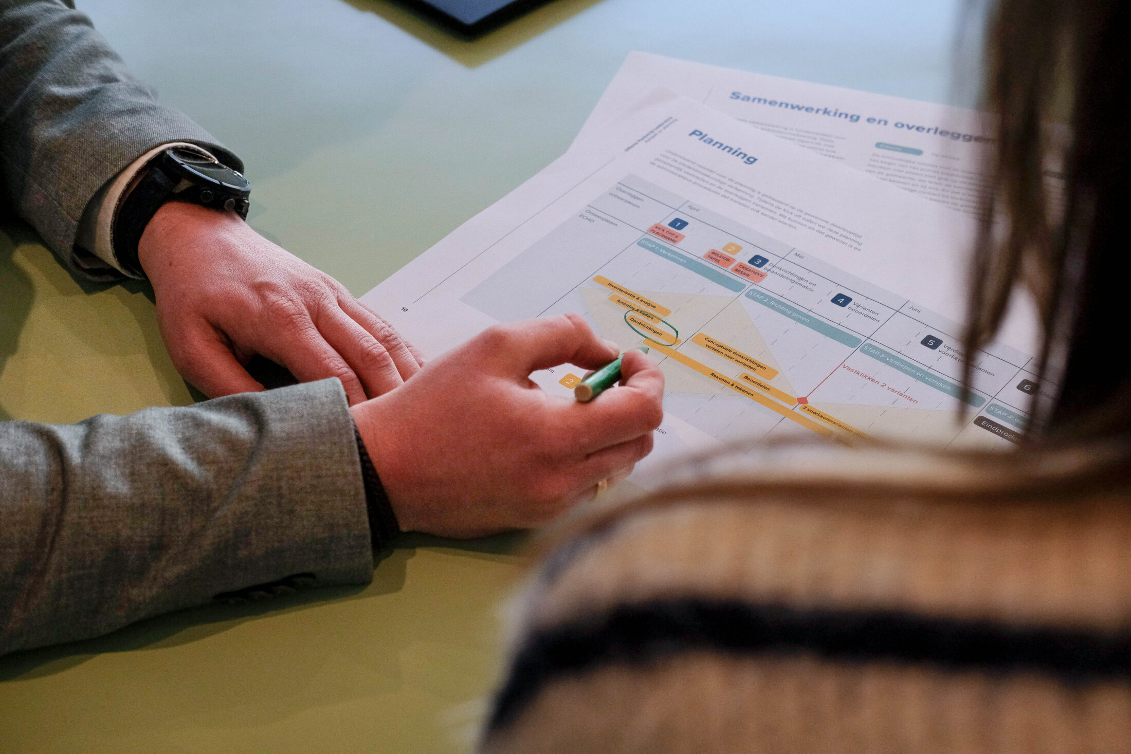 Dat betekent concreet dat wij heldere processtappen organiseren, besluitvorming voorbereiden, keuzes expliciet maken de samenhang tussen visie, strategie en uitvoering bewaken. We brengen stakeholders samen met één gedeeld verhaal en zorgen dat iedereen weet waar en wanneer invloed wordt uitgeoefend.